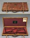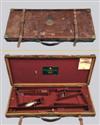 HOLLAND & HOLLAND A BRASS-CORNERED OAK AND LEATHER DOUBLE GUNCASE,