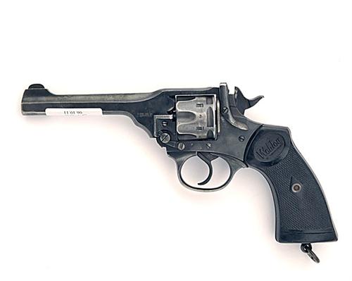 A .38 (S&W) SIX-SHOT DOUBLE-ACTION REVOLVER SIGNED WEBLEY & SCOTT, MODEL MARK IV SOUTH AFRICAN POLICE ISSUE, serial no. A4977,