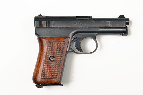 ** A 6.35MM (25ACP) SEMI-AUTOMATIC PISTOL SIGNED MAUSER sn, 303961 with 3in barrel, the right hand side of the frame stamped with "AFS395" retaining good amounts of original colour with chequered one piece factory wood grip.