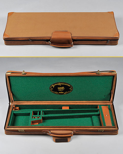 for small bore gun for 26 inch barrels, green baize lined interior with Parker Reproductions label