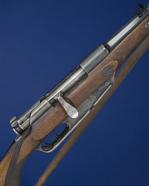 A GERMAN 8X57mm MANNLICHER BOLT-MAGAZINE SPORTING RIFLE, serial no. 4804613, 23in. blued octagonal nitro barrel (proved in 2009) with matt top-flat, block fore-sight, rear-sight of one standing and one folding leaf, matt receiver-ring, 14 1/4in. pistolgrip stock, raised cheek-piece, chequered grip, schnabel fore-end, case-hardened magazine / trigger-guard assembly, set triggers, sling mounts, leather sling.