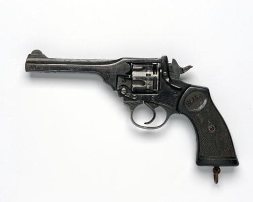 A .38 (S&W) SIX-SHOT DOUBLE-ACTION REVOLVER SIGNED WEBLEY, MODEL MARK IV, serial no. 155878,