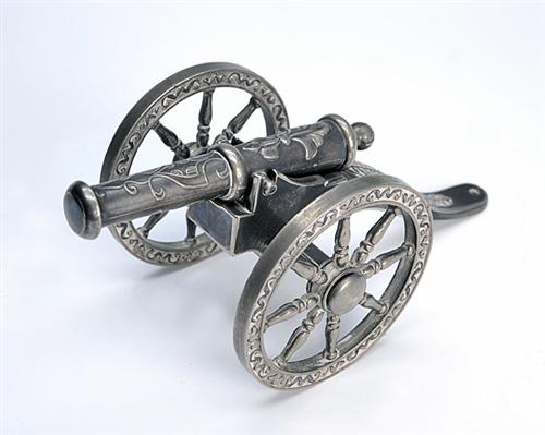 A DECORATIVE SILVER-PLATED MODEL FIELD GUN,