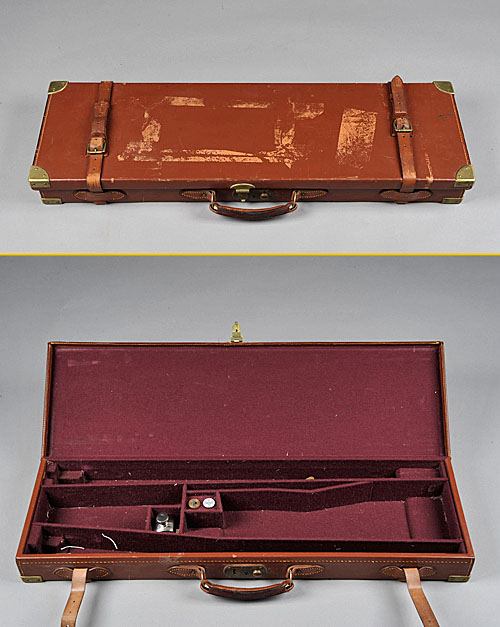 maroon baize lined and fitted for approx. 30in. barrels, slight scuffles to lid otherwise 'as new' condition.