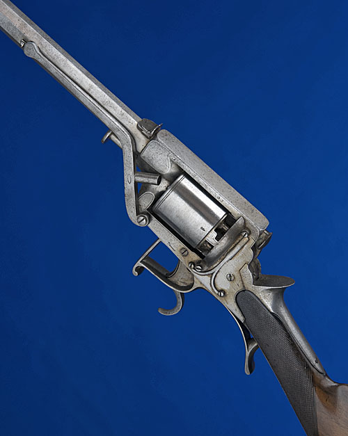 A FRENCH RETAILED 32-BORE TRANTER PATENT DOUBLE-TRIGGER FIVE-SHOT PERCUSSION REVOLVING RIFLE,