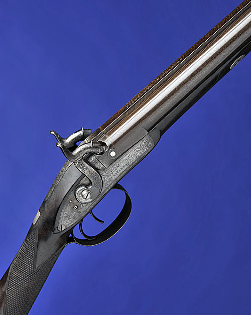 circa 1835, with 29 1/2in. slightly shortened rebrowned twist barrels signed 'FISHENDEN TONBRIDGE' on the rib (signature refreshed, fore-sight missing), scroll engraved patent breeches each with pierced platinum plug and inlaid with two platinum lines on the rib between, border and foliate engraved tang and locks, the latter each signed 'FISHENDEN' (hammers replaced), figured walnut half-stock with chequered grip (repaired above and beneath the left lock, small chip behind right lock, some bruising), border and scroll engraved iron mounts (some wear and surface corrosion), silver escutcheon and barrel-bolt escutcheons, and later brass-tipped ramrod, London proof marks.