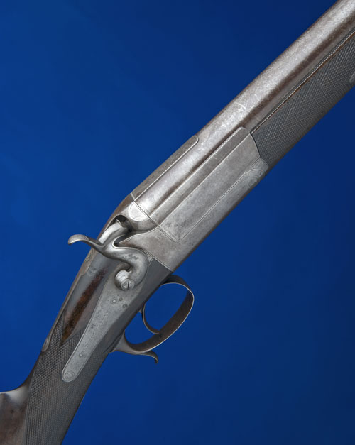 36in. black powder only 'THOMAS TURNER PATENTEE LAMINATED STEEL' barrel, action incorporating T. Turner patent pull-back underlever, patent no. 2585 of 19th October 1864, arcaded fence, carved percussion fence, non-rebounding back-action lock engraved 'W.H. THORNE. ST. JOHN. N.B.', border engraving, 14 3/8in. well-figured stock including steel buttplate, fore-end with 1 1/2in. horn finial, weight 10lb. 8oz.
