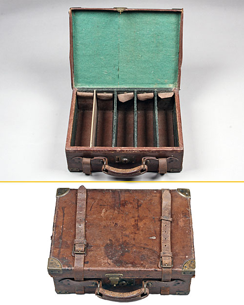A BRASS-CORNERED LEATHER CARTRIDGE MAGAZINE, for approx. 250 cartridges Estimate £150-200