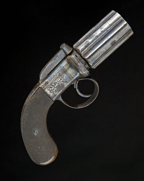 * A 90-BORE SIX-SHOT PERCUSSION PEPPERBOX REVOLVER,