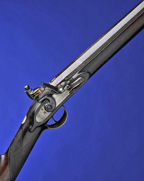 AN 11-BORE SINGLE-BARRELLED FLINTLOCK SPORTING GUN SIGNED MURDOCH, CARLISLE,