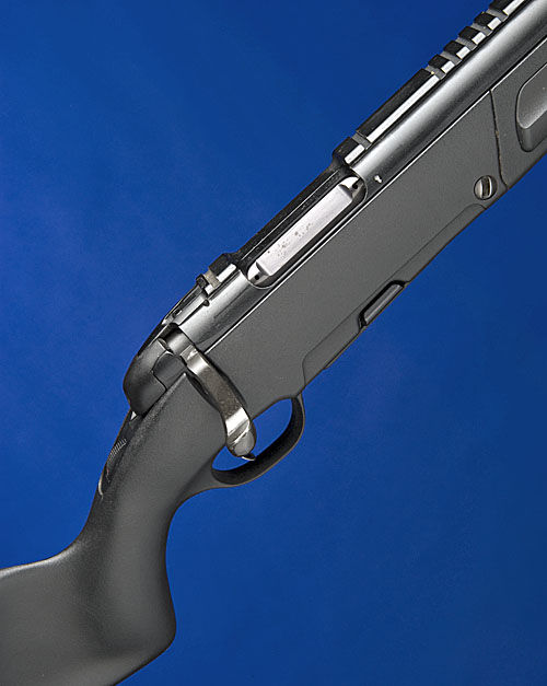 19in. fluted nitro barrel (23in. including sound moderator) with integral scope rail, flip-up blade fore-sight and rear sight, roller-tang safety with 'locking safe', 12 12in. synthetic stock with integral folding bipod, provision for a spare magazine.