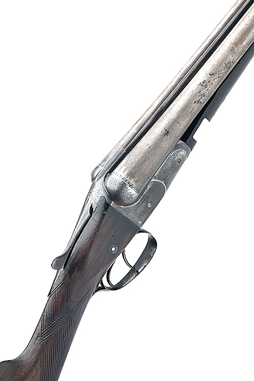 W.W. GREENER 12-BORE BOXLOCK EJECTOR, serial no. 44851, 30in. nitro reproved barrels (struck off), rib engraved 'W.W. GREENER. 68. HAYMARKET. LONDON. GREENER'S WROUGHT STEEL INDESTRUCTIBLE BY GUNPOWDER.', 2 3/4in. chambers, bored approx. 1/2 and 3/4 choke, treble-grip action, manual side safety, border and partial scroll engraving, 14 1/2in. stock (cracked and repaired at hand, losses to fore-end wood), weight 6lb. 15oz.