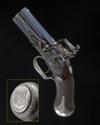 A 56-BORE SILVER-MOUNTED SINGLE-TRIGGER OVER AND UNDER FLINTLOCK POCKET PISTOL,