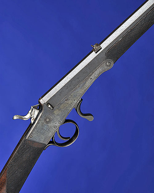 28in. blued octagonal barrel signed 'H. HOLLAND. 98 NEW BOND ST. LONDON' towards the breech, bead fore-sight, rear-sight of one standing and two folding leaves, border engraved blued action stamped 'W. TRANTER PATENT' on the left side, underlever with traces of original case-hardened finish, 14 1/2in. figured stock with chequered grip and fore-end (fore-end tip chipped), border engraved iron mounts retaining traces of original blued finish.