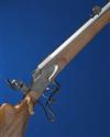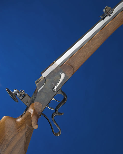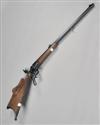 21cm. barrel contained within a 71.5cm. blued octagonal outer tube, bead fore-sight with protector, case-hardened quadrant rear-sight, case-hardened receiver and block, the tang fitted with a case-hardened aperture rear-sight, set triggers, 13 1/2in. figured stock of characteristic form with shaped raised cheek-piece, chequered grip, case-hardened hooked butt-plate and scrolled pistolgrip trigger-guard acting as the action-lever, sling mounts, and much original finish throughout.