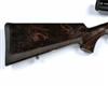 25 1/2in. octagonal nitro barrel with matt sighting flat, ramp-mounted bead fore-sight, flip-up leaf sight calibrated to 100 metres and with platinum-inlaid centre-line, fitted with a Schmidt & Bender 6x42 telescopic sight in quick detachable mounts, scroll engraved case-hardened action signed 'G. WALTHER. KOCHEL a. SEE' on the right and 'SYSTEM HEEREN' on the left, 14 1/4in. highly-figured un-chequered pistolgrip stock including 34in. rubber recoil pad, with raised cheekpiece, case-hardened pistolgrip cap with hinged cover, fore-end cap, sling eyes.