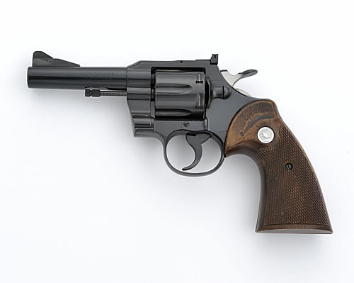 4in. barrel, adjustable rear-sight, blued wide-spur hammer with bright sides, blued trigger, walnut target grips with raised chequered panel and 'COLT' medallion, in as new condition, in original factory carton with instruction manual.