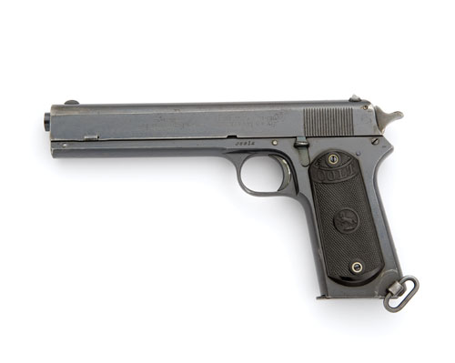 A RARE .38 (RIMLESS) 'MODEL 1902 MILITARY' SELF-LOADING PISTOL RETAILED BY GEO. HINTON, TAUNTON, serial no. 36814 for 1914,