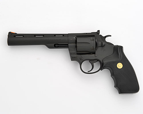 6in. barrel, adjustable rear-sight, wide spur hammer, matt blue combat finish, shaped chequered black rubber grips with 'COLT' medallion, in as new condition, in original factory carton with instruction manual.