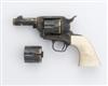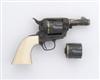 A .44-40 'SHERIFFS MODEL' SIX-SHOT SINGLE-ACTION REVOLVER WITH SECOND .44 (SPECIAL) CYLINDER, serial no. SA41730 for 1980, 3in. blued barrel profusely engraved with scrollwork against a stippled ground, inlaid with two gold lines at the muzzle and breech-end, with gold-inlaid 'COLT SHERIFFS MODEL' and 'COLT S.A.A. 4 CAL.', and with gold-encrusted sawn-off shotgun, gun-belt with a revolver in its holster and a Winchester lever-action rifle (the tools of a Sheriff), blued cylinder engraved with scrollwork en suite and with two gold-inlaid lines and gold-inlaid '44-40', the second cylinder identical apart from gold-inlaid '44 SPL', case-hardened frame and hammer engraved en suite, blued grip-strap and trigger-guard engraved en suite, one-piece mammoth ivory grips, the left grip carved in high relief with a rampant colt, the top of the grip-strap with gold-inlaid initials 'BB'.