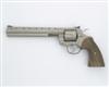 A .38 (SPECIAL) 'PYTHON TARGET' ELCTROLESS NICKEL-PLATED SIX-SHOT DOUBLE-ACTION REVOLVER, serial no. LA8838 for 1980, 8in. barrel engraved with sprays of scrollwork all against a stippled ground, adjustable rear-sight, the cylinder and frame each engraved with further scrollwork en suite with the barrel, the top of the grip-strap engraved with the initials 'BB', plain figured walnut grips, grade B engraving.