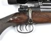 28in. blued nitro barrel signed 'WESTLEY RICHARDS & CO. LONDON', matt block-mounted bead fore-sight with tunnel-cover, matt block-mounted rear-sight of one standing and two folding leaves calibrated to 300 yards, blued receiver marked 'WESTLEY RICHARDS 318 ACCELERATED EXPRESS' (later cocking-piece), fitted with a Bushnell 4x40 telescopic sight on a rail, horn bolt-handle, 14 3/8in. figured pistolgrip stock (pinned around receiver, some marking) including later 1/2in. rubber butt-pad, chequered grip and fore-end, set triggers, horn pistolgrip-cap and fore-end cap, trigger-guard and magazine floor-plate each with border and scroll engraving, gold escutcheon, sling eyes (older refinish throughout).