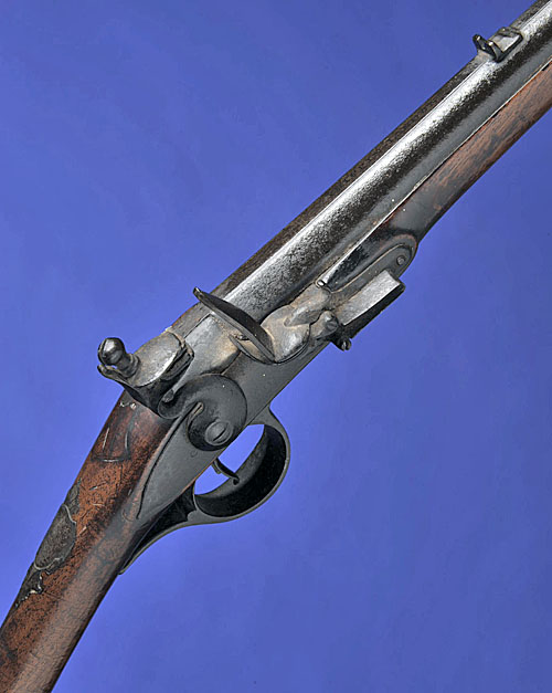 Other Notes: This type of screw-breech sporting rifle was popular for shooting fallow deer from trees and other hides above ground level where the hunter's scent wouldn't alert the quarry but also where a muzzle-loading rifle would be totally impractical. This type of screw-breech rifle pre-dated the Ferguson breech-loading rifle by at least two decades. For further information see W. Keith Neal & D.H.L. Back, Great British Gunmakers 1740-1790, pp. 115-6, pl. 440 where it is noted that Griffin was a well known maker of such rifles. The presence of the saw may well have been for removing small branches obscuring the line of sight to the herd of deer once the hunter was ensconced in his perch.