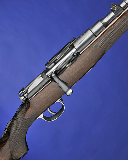22 3/8in. nitro reproved barrel (in 2010) with open sights and folding leaf sight for 300 metres, ramp-mounted bead foresight, rib engraved 'MANTON & CO. GUNMAKERS. CALCUTTA. MADE IN AUSTRIA.', the receiver with a side rail, the top tang with a flip-up peepsight, detachable magazine, 14 1/2in. pistolgrip stock with cheekpiece, sling swivels, detachable pistolgrip-cap, steel buttplate (with trap), in its original Manton labelled brass-cornered canvas take-down case, together with side-rail mounts (needs adapting to fit rail) and Oigee Luxor 6x90 DOP.EL. telescopic sight, the spare stock with no cheekpiece and with replacement pistolgrip-cap,