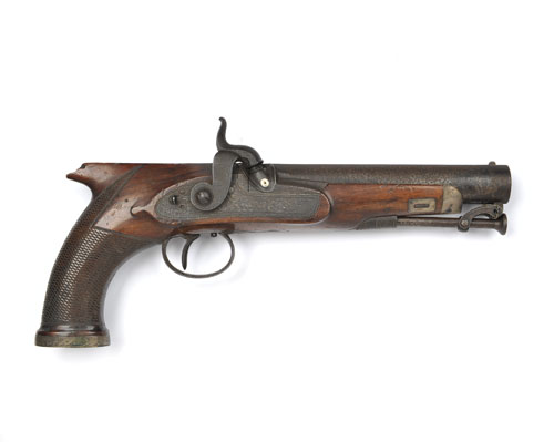 A 16-BORE SAW-HANDLED PERCUSSION TRAVELLING PISTOL,