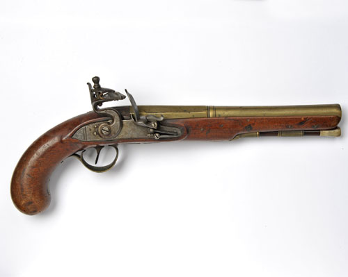 A 22-BORE BRASS-BARRELLED FLINTLOCK PISTOL SIGNED ARCHER,