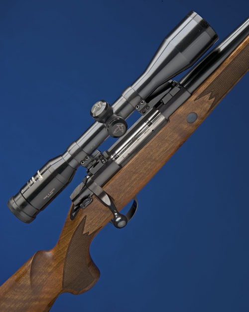 23in. blued nitro barrel, fitted with a Swarovski 6x42 telescopic sight in Apel mounts, 14in. pistolgrip stock including 3/4in. rubber extension, chequered grip and fore-end, raised cheekpiece, sling eyes
