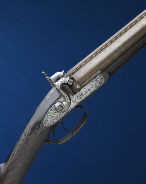 A 12-BORE DOUBLE-BARRELLED PERCUSSION SPORTING GUN, serial no. 1115,