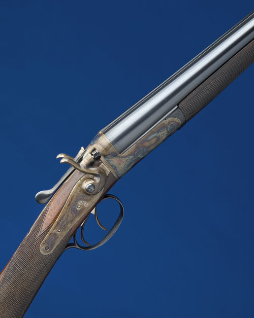 28in. nitro reproved barrels, rib engraved 'JOHN WILKES. 1. LOWER JAMES ST. GOLDEN SQUARE. LONDON. W.', 2 1/2in. chambers, bored approx. imp. cyl. choke in both, rebounding back-action locks, border and bold scroll engraving, retaining virtually full renewed colour-hardening and finish, 15 1/4in. figured stock including 1 3/8in. wooden extension, weight 4lb. 9oz.