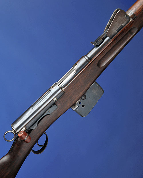 with 30 7/8in. blued sighted barrel (bore excellent), blued receiver, 12in. regulation straight-hand stock, blued non-detachable magazine with cut-off, sling mounts, and brass muzzle cover (light surface rust to exposed metal parts, mild bruising to stock)