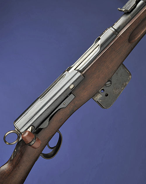 with 30 7/8in. blued sighted barrel (bore excellent), blued receiver, 12in. regulation straight-hand stock, blued non-detachable magazine with cut-off, sling mounts, and brass muzzle cover (light surface rust to exposed metal parts, mild bruising to stock)