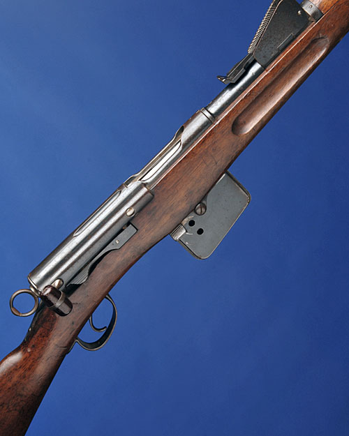 with 30 7/8in. blued sighted barrel (bore excellent), blued receiver, 12in. regulation straight-hand stock, blued non-detachable magazine with cut-off, sling mounts, and brass muzzle cover (light surface rust to exposed metal parts, mild bruising to stock)