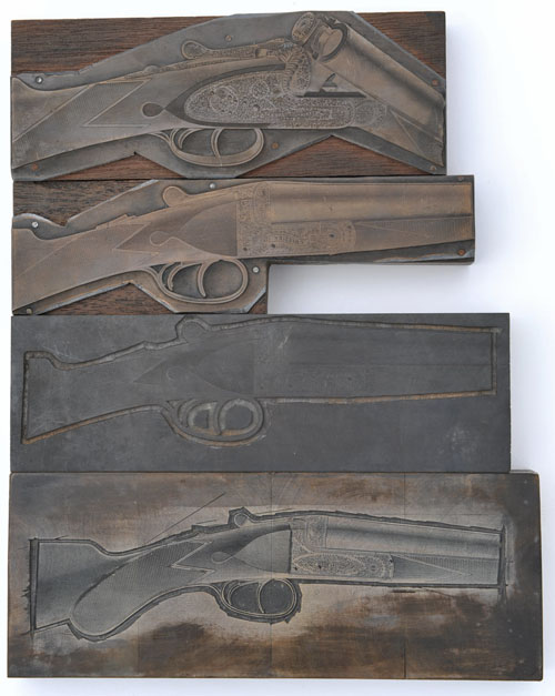 all with artist's line drawings depicting shotguns, probably for use in a sales catalogue.