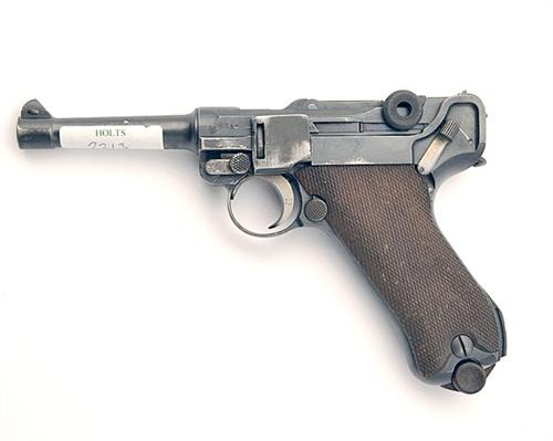 A DEACTIVATED 9mm PISTOL SIGNED DWM, MODEL 'PO8 LUGER', serial no. 6745, dated for 1917, with 4in. barrel, blued frame and receiver, chequered wood grips, sideplate a replacement otherwise all matching numbers including magazine, much original finish, with certificate