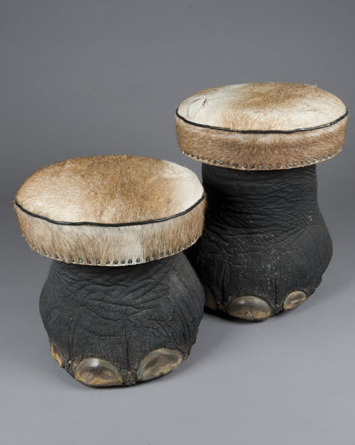A PAIR OF AFRICAN ELEPHANT FOOT STOOLS,