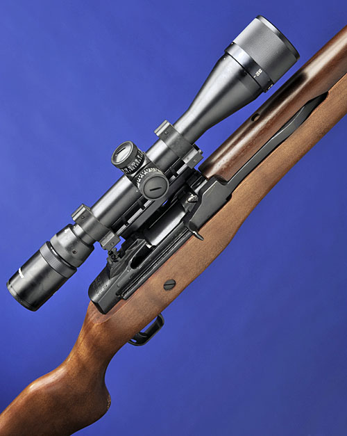 recent, with 18 1/2in blued, sighted barrel, blacked receiver with maker and model details, detachable magazine, plain beech half-stock fitted with swivels and mounted with a 'BUSHMASTER' 4-12x40 telescopic sight with parallax adjustment and target turrets, the whole appearing little used.