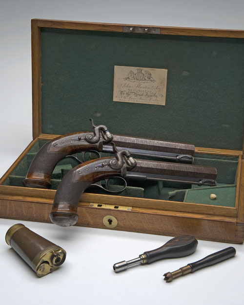 A FINE CASED PAIR OF 20-BORE PERCUSSION BELT PISTOLS,
