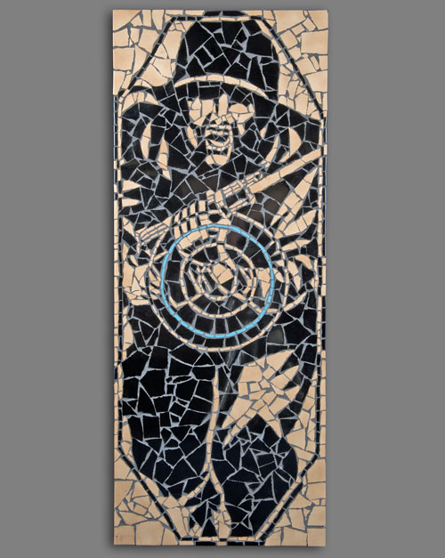 a privately commissioned mosaic of ceramic tile on board, signed on the reverse by the artist and dated Feb. 24th 2006, 18in. x 45in.