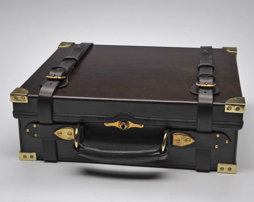 HOLLAND & HOLLAND A VIRTUALLY NEW AND UNUSED BRASS-CORNERED OAK AND LEATHER CARTRIDGE MAGAZINE,
