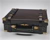 A VIRTUALLY NEW AND UNUSED BRASS-CORNERED OAK AND LEATHER CARTRIDGE MAGAZINE,