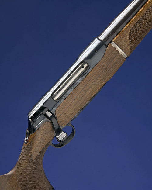 23 3/4in. nitro barrel with ramp-mounted bead fore-sight, ramp-mounted rear open sight, receiver tapped for scope mounts, set trigger, 14in. hogsback pistolgrip stock including 5/8in. rubber extension, cheekpiece, palm-swell, sling swivels, in a universal case