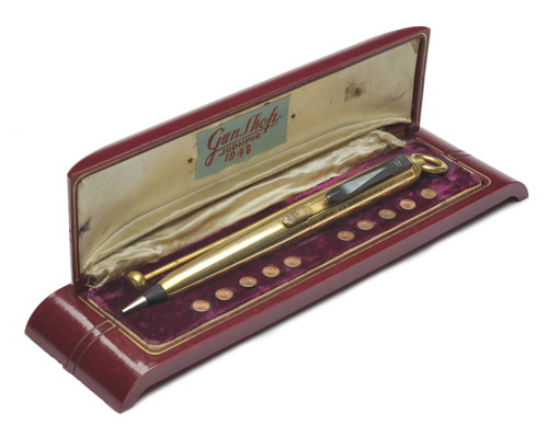 A RARE, POSSIBLY UNIQUE .22 (RF) GOLD-PLATED PENCIL-PISTOL, no visible serial number,