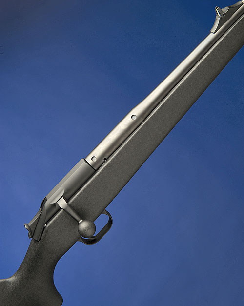 22in. nitro barrel with block-mounted open sights and ramp-mounted blade foresight, blued finish overall, 14 1/4in. composite pistolgrip stock with sling swivels and 1/4in. rubber recoil pad, weight 6lb. 12oz.