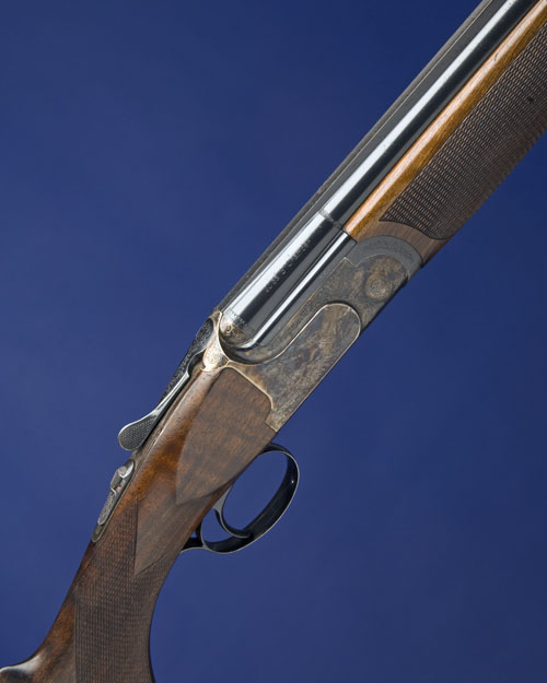 29in. nitro barrels with 8mm raised matt top-rib, 3in. chambers, bored approx. imp. cyl. and 1/4 choke, hold-open toplever, automatic safety with integral barrel selector switch, relief engraved with game birds and 'the Macnab', retaining virtually full original colour-hardening and finish, 14 1/2in. pistolgrip stock including buttplate, weight 6lb. 4oz., in its universal case