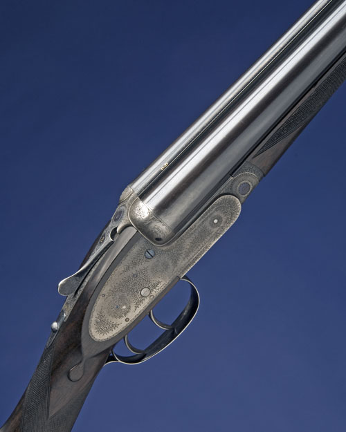 28in. nitro chopperlump barrels, rib gold-inlaid '2' and engraved 'J. PURDEY & SONS. AUDLEY HOUSE. SOUTH AUDLEY STREET. LONDON. ENGLAND.', 2 1/2in. chambers, bored approx. 1/4 and 1/2 choke, self-opening action with removable striker discs, automatic safety with gold-inlaid 'SAFE' detail, cocking-indicators, best bouquet and scroll engraving, retaining some original colour-hardening, 14 1/2in. well-figured stock including 3/4in. leather covered recoil pad, weight 6lb. 9oz. We are kindly informed by the makers that this shotgun was completed December 1974.