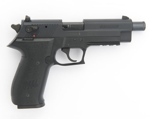 recent, with 5in barrel, sighted slide, the frame with accessory rail and black plastic stippled grips, TOGETHER WITH its original plastic makers carry-case, spare magazine and papers (pistol appears unfired).